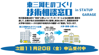 11月20日(木) 13時~16時、スタートアップガレージ内に東三河広域経済連合会『東三河ものづくり技術相談窓口』 の出張相談所を開設します。 「大学と共同研究したい」「不良品率を減らしたい」「新製品開発にあたりアド […]